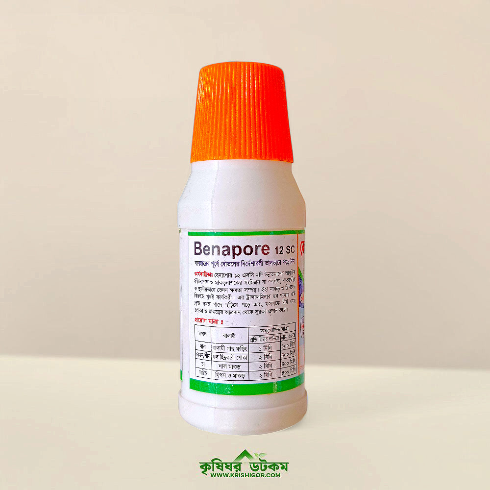 - প্রয়োগ পদ্ধতি: নির্দিষ্ট পরিমাণ বেনাপোর ১২ এসসি পরিষ্কার পানির সাথে ভালোভাবে মিশিয়ে গাছের উপর সমানভাবে স্প্রে করতে হবে।