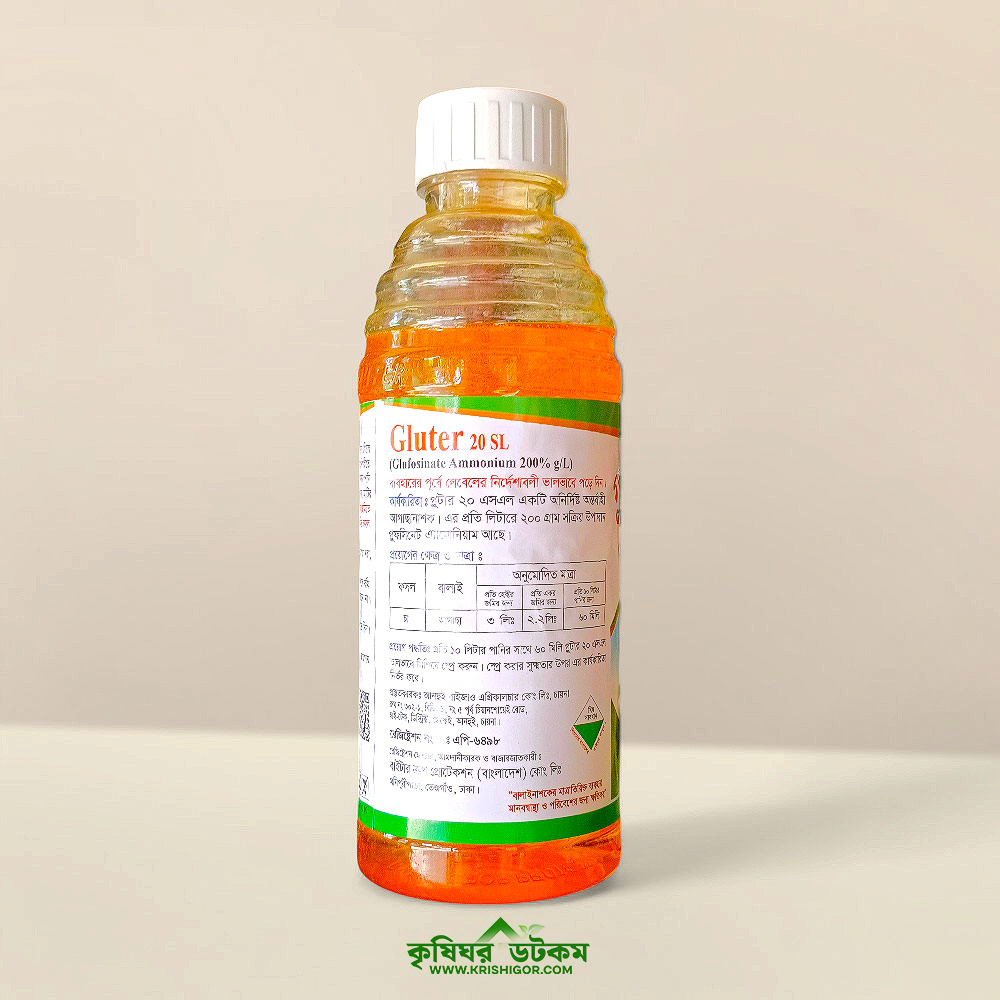 গ্লুটার ২০ এসএল মূলত স্পর্শক গুণসম্পন্ন কিন্তু এর সামান্য অন্তর্বাহী ক্ষমতাও রয়েছে। গ্লুটার ২০ এসএল একটি পরিবেশ বান্ধব আগাছানাশক, এর ভিতরে বিদ্যমান আছে প্রতি লিটারে ২০০ গ্রাম গ্লুফোসিনেট অ্যামোনিয়াম, গ্লুটার ২০ এসএল এর সংস্পর্শে আসা প্রাই সকল প্রকার আগাছা দমন হয়। গ্লুটার ২০ এসএল বিভিন্ন ফসল ক্ষেতের ভিতর প্রয়োগ করা যাই যেমন: ড্রাগন, কলা, আম, পেয়ারা, মাল্টা সহ বিভিন্ন ফলের আগাছানাশক রূপে ব্যাপকভাবে ব্যবহার হয়, এছাড়াও এটি মরিচ ফসলের মরিচের পাতাকে এড়িয়ে স্প্রে করলে মরিচ ক্ষেতের আগাছা দমন করা যায়।