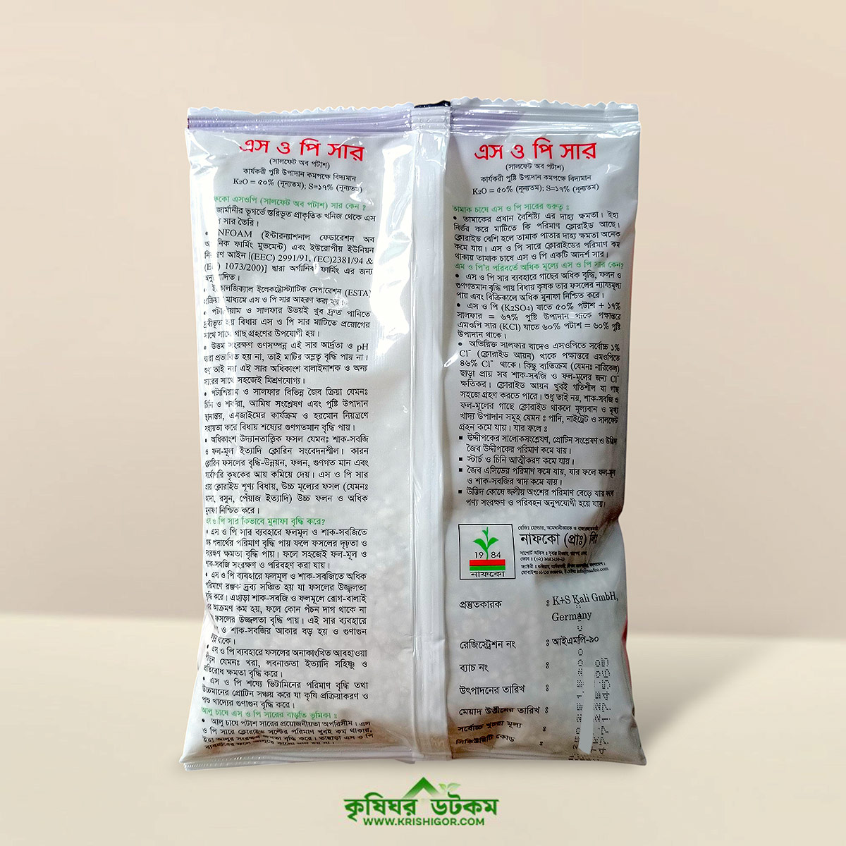 - এম ও পি সারের থেকে এস ও পি সার ব্যবহারে গাছের অধিক বৃদ্ধি, ফলন ও গুণগতমান বৃদ্ধি পায় কারণ এর ভিতর পটাশিয়াম ও সালফার থাকে বিধায় দ্বিগুণেরও বেশি তাই ফলন হয় এতে ফসল বিক্রি করে অধিক লাভবান হওয়া যায়।